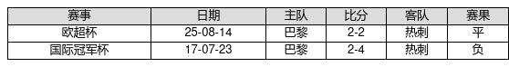 巴黎 VS 热刺两队近10年的交战次数为2场,巴黎0胜1平1负,赢球概率为0.0%,平局概率为50.0%,输球概率为50.0%。