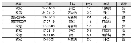 阿森纳 VS 拜仁两队近10年的交战次数为8场,阿森纳2胜2平4负,赢球概率为25.0%,平局概率为25.0%,输球概率为50.0%。