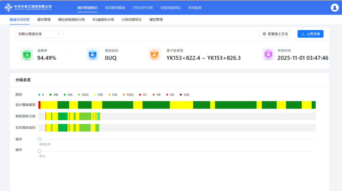 该项目以“蓝翼大模型”为核心AI引擎,融合多源数据智能分析、模型训练迭代优化等技术,构建了随钻参数围岩识别大模型和基于BQ值参数获取大模型,实现围岩等级的智能判识。系统通过感知层采集多源数据,平台层进行多模态融合与深度学习,应用层输出围岩识别结果与施工建议,形成“识、判、设”一体化解决方案。实际应用中,系统在义龙庆高速公路项目试点中识别准确率达90%以上,显著降低人工判别的主观性。
