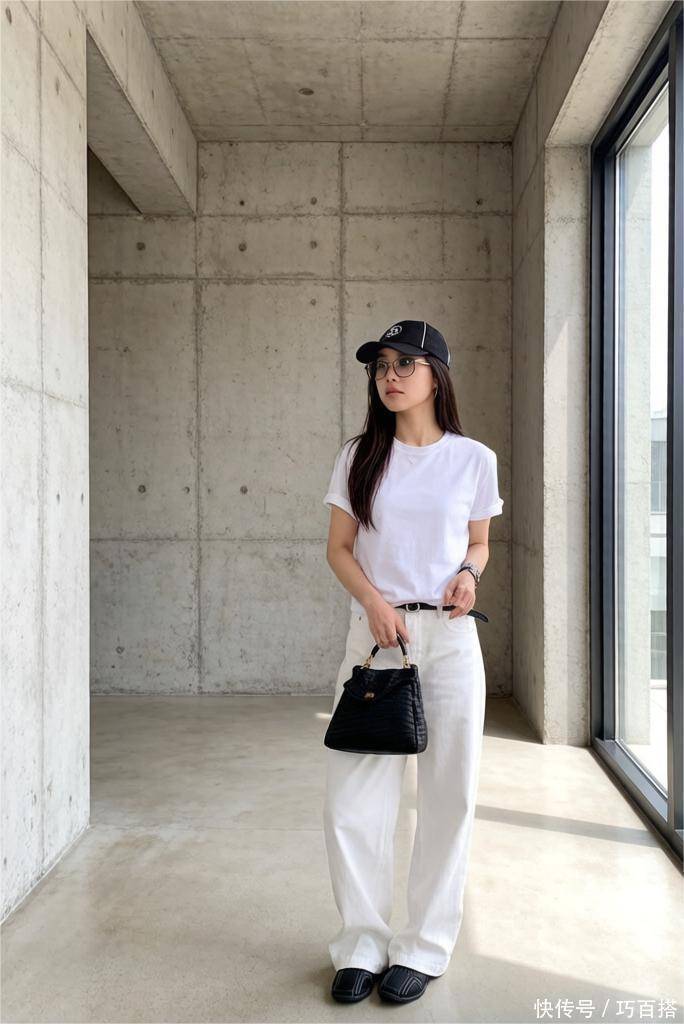 喜欢法式优雅风格的姐妹,纯白T恤或缎面真丝衬衫可以穿出理想效果,下装以白色直筒牛仔裙或白色修身九分牛仔裤为主不会出错。