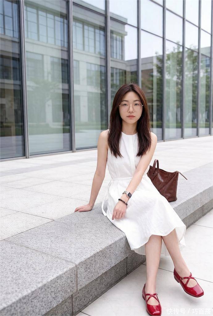 长相清纯、干净,喜欢化淡妆的姐妹,可以借鉴博主身上这套造型,基础款纯白色连衣裙上身,干净简单,颇有“出淤泥而不染濯清涟而不妖”的气质。