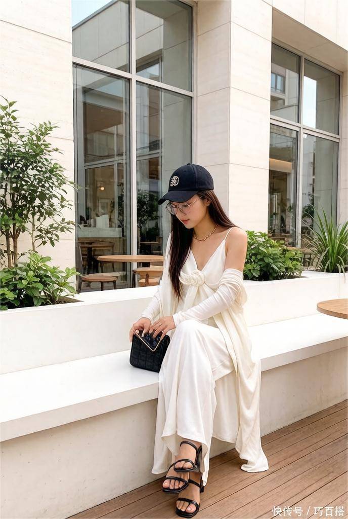 选用连衣裙代替上下两件组合单品,对搭配小白和对色系不敏感姐妹来说非常友好,选择白色吊带背心搭配白色蛋糕裙,对淡颜姐妹来说可以穿出意想不到的让人如沐春风的感觉。