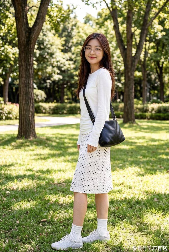 修身单品不会紧贴身材,利用空间感增加透气性和搭配的灵活性,单品也不会太过宽松,让人觉得松弛有度,大方得体,白色轻薄款打底衫搭配白色波点直筒裙就值得借鉴。